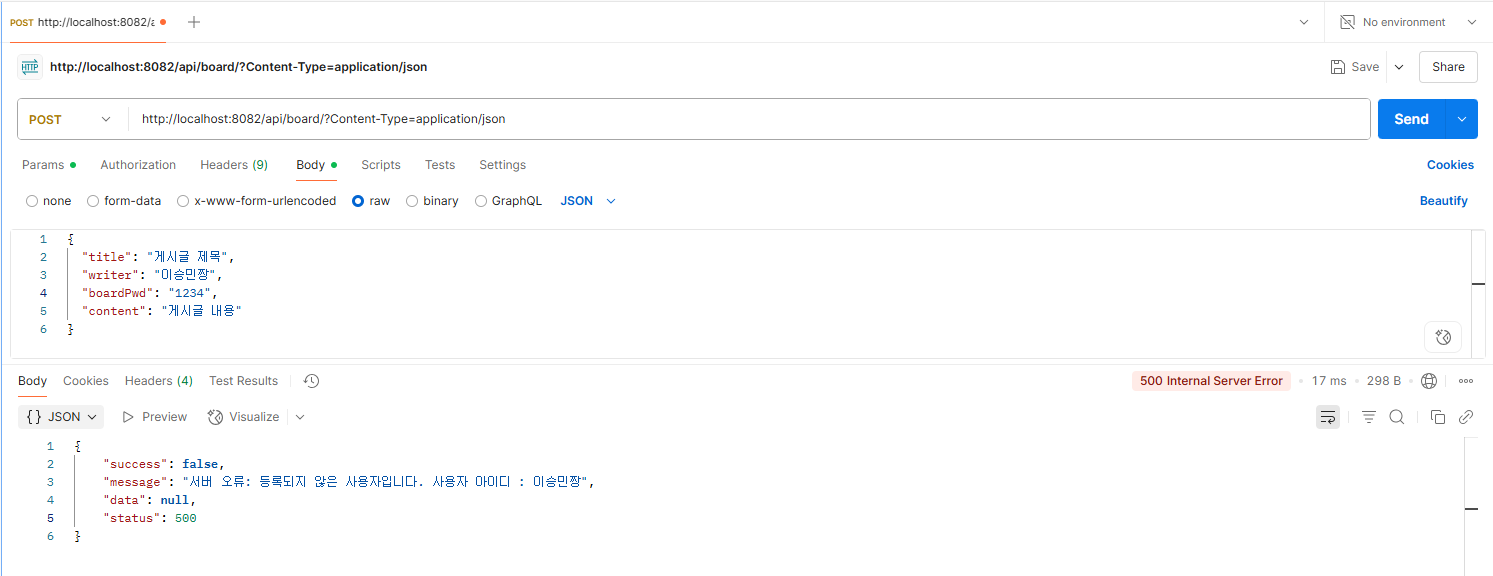 이 테스트를 하면서 예외처리와 응답 포맷을 추가로 구현했음..